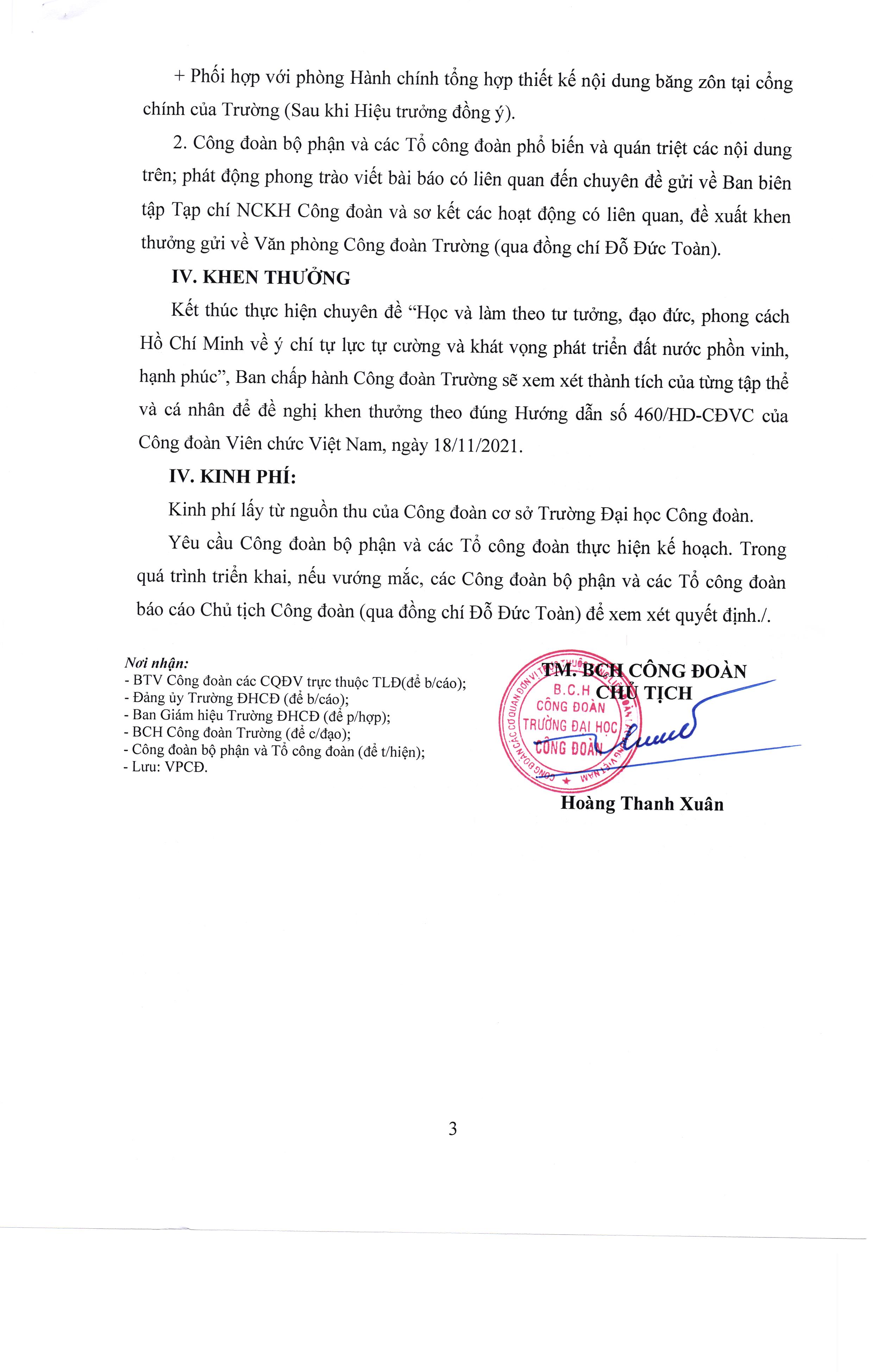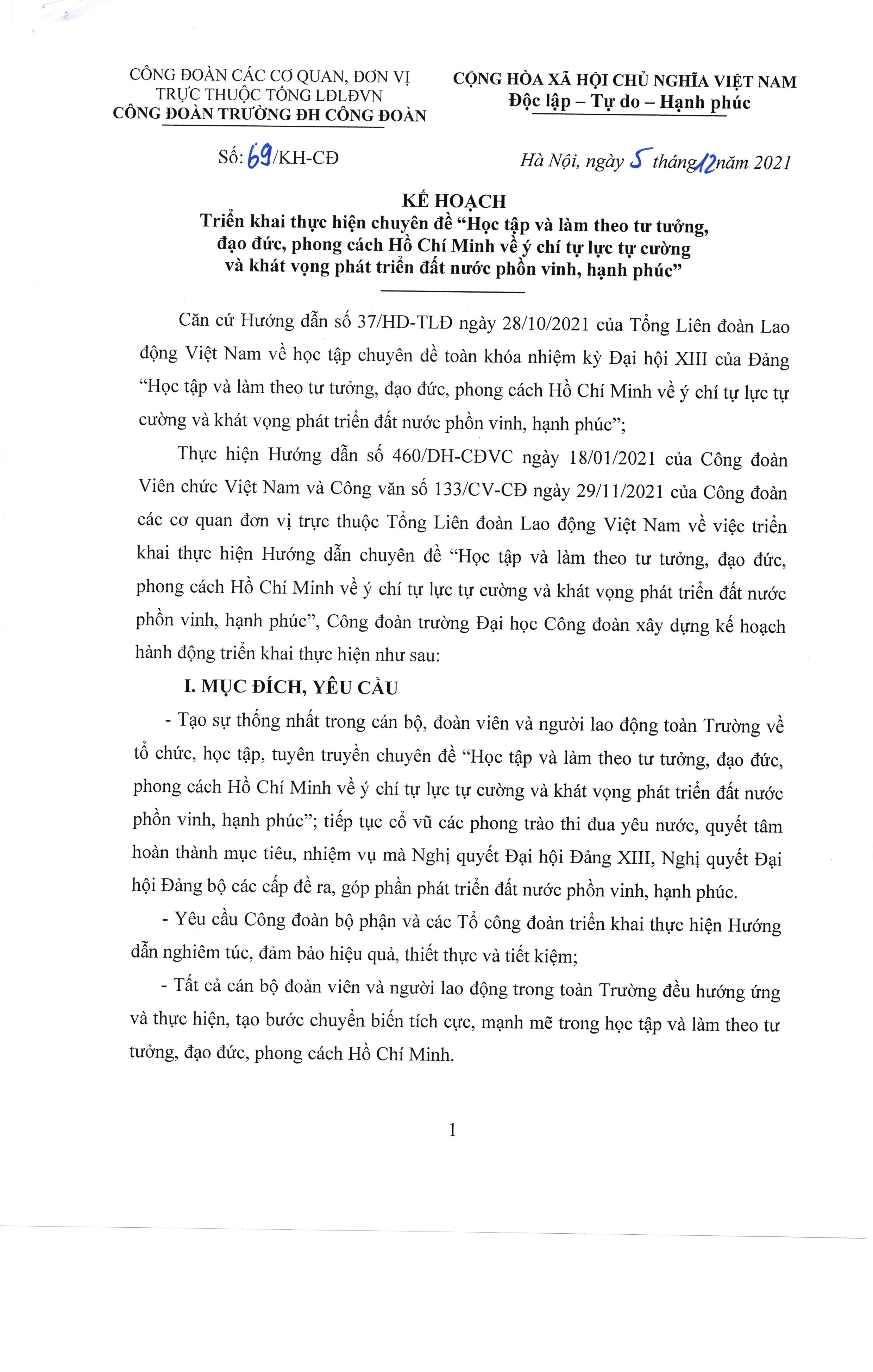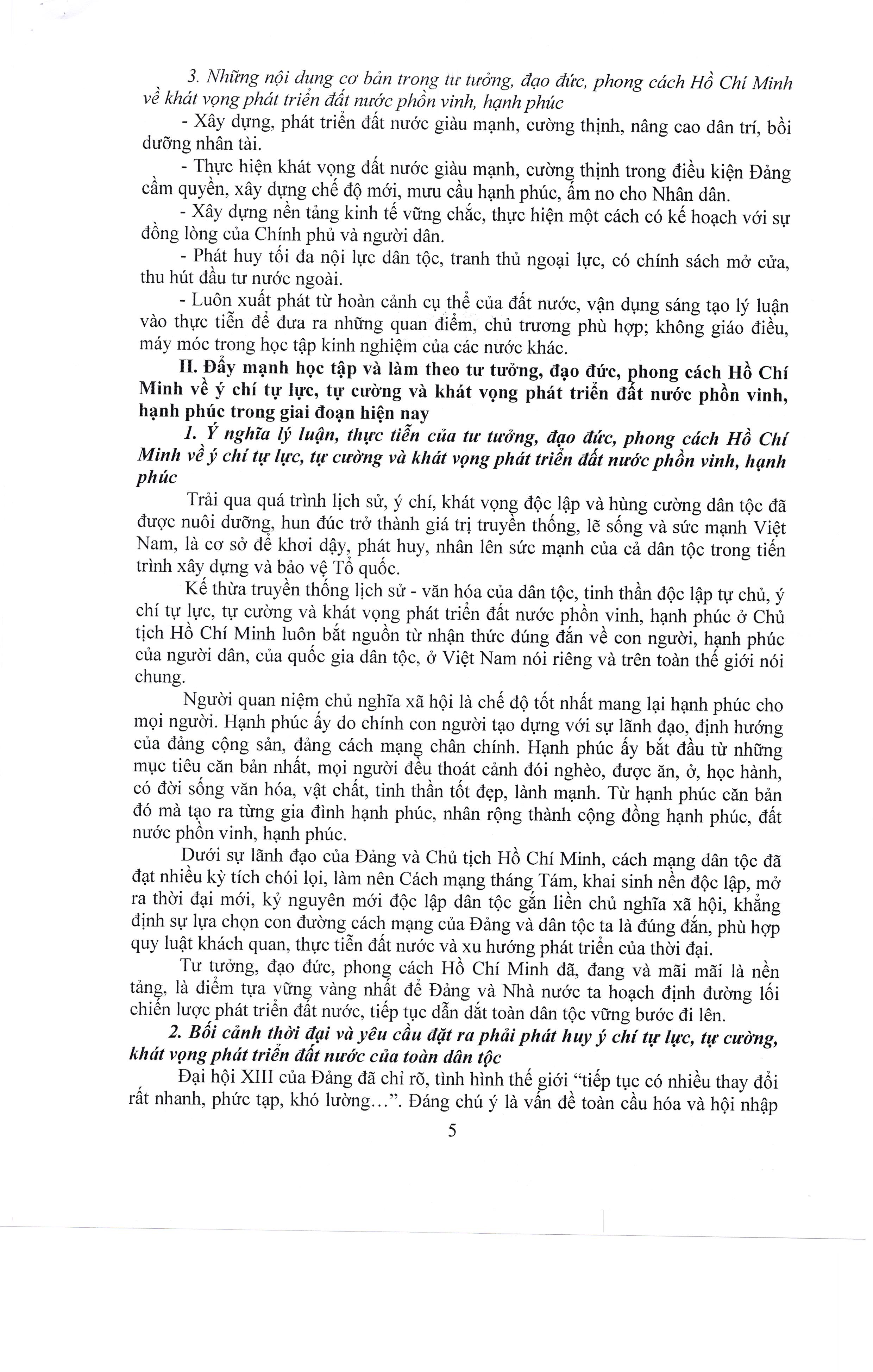 Kế hoạch triển khai thực hiện chuyên đề "Học tập và làm theo tư tưởng, đạo đức và phong cách Hồ Chí Minh về ý chí tự lực, tự cường và khát vọng phát triển đất nước phồn vinh, hạnh phúc"