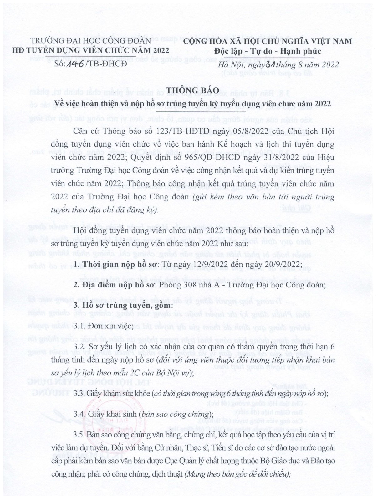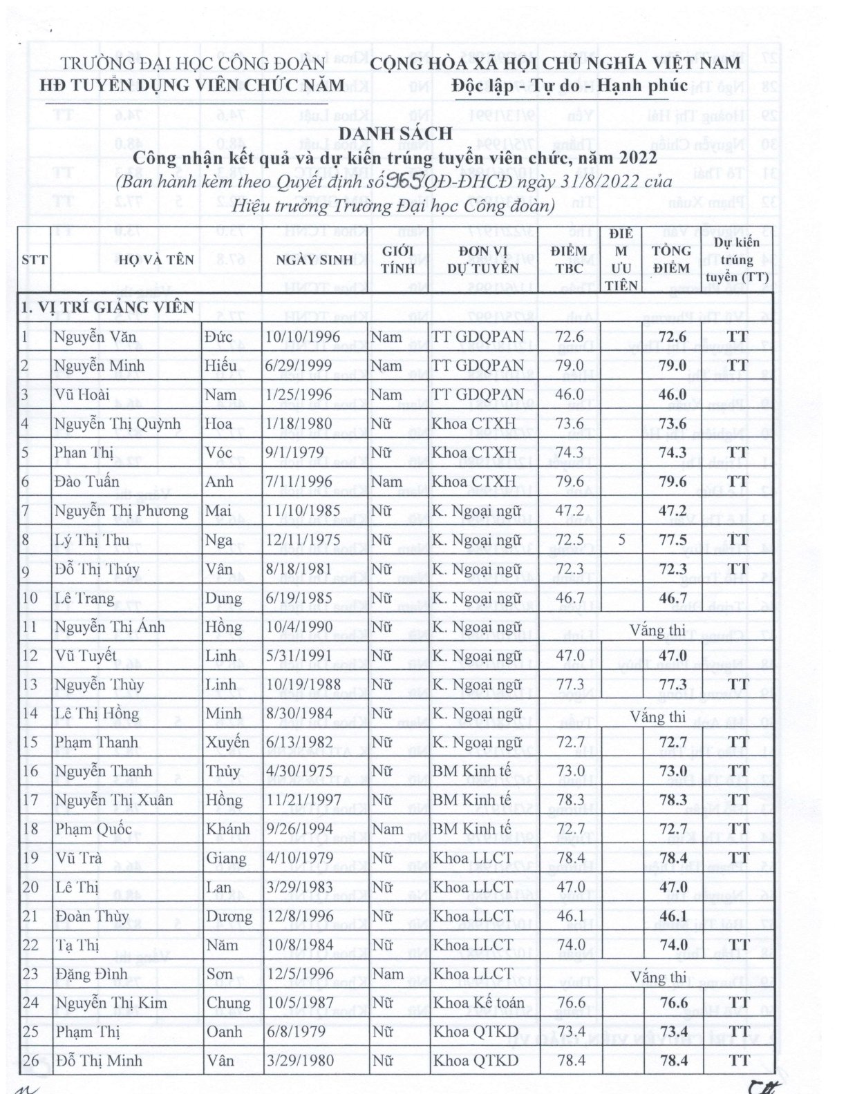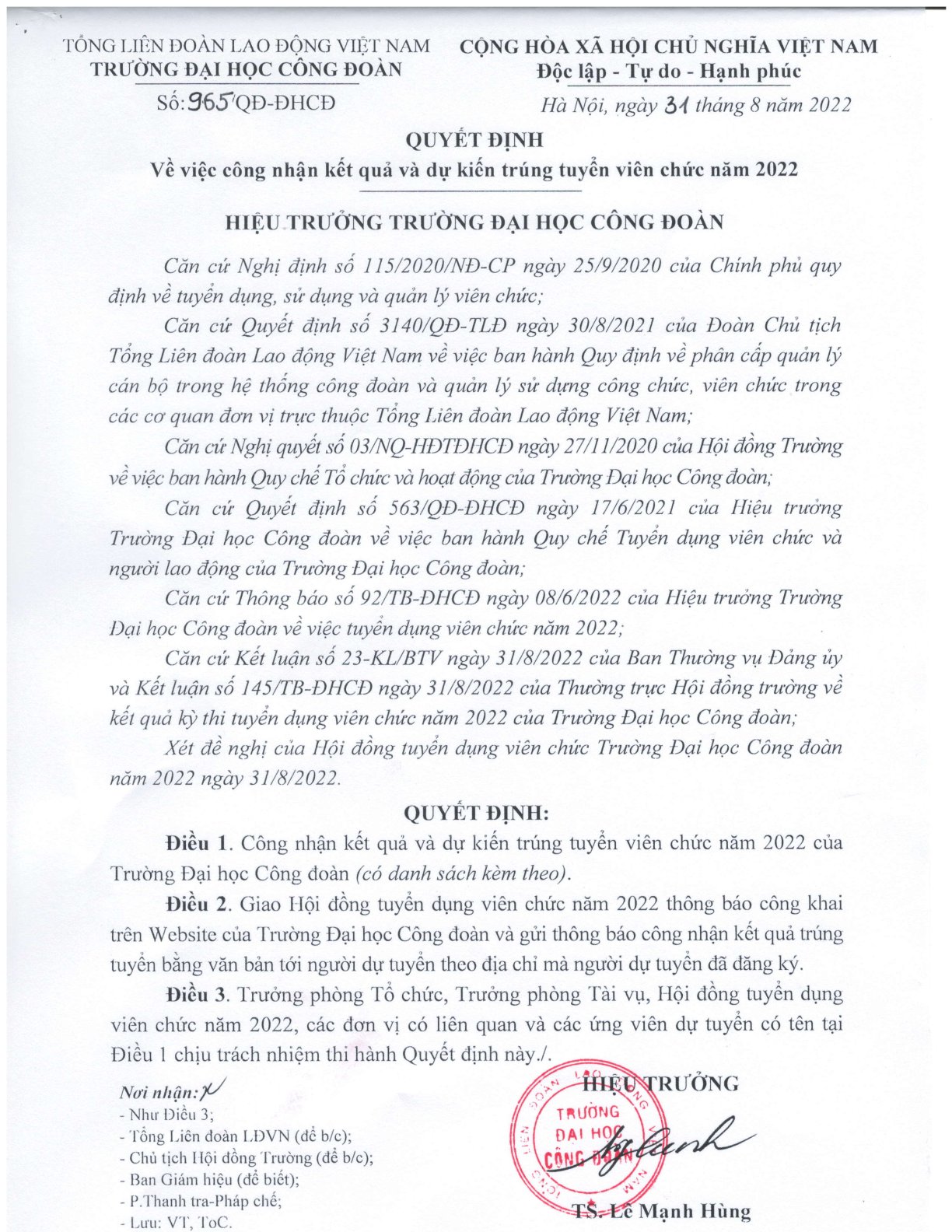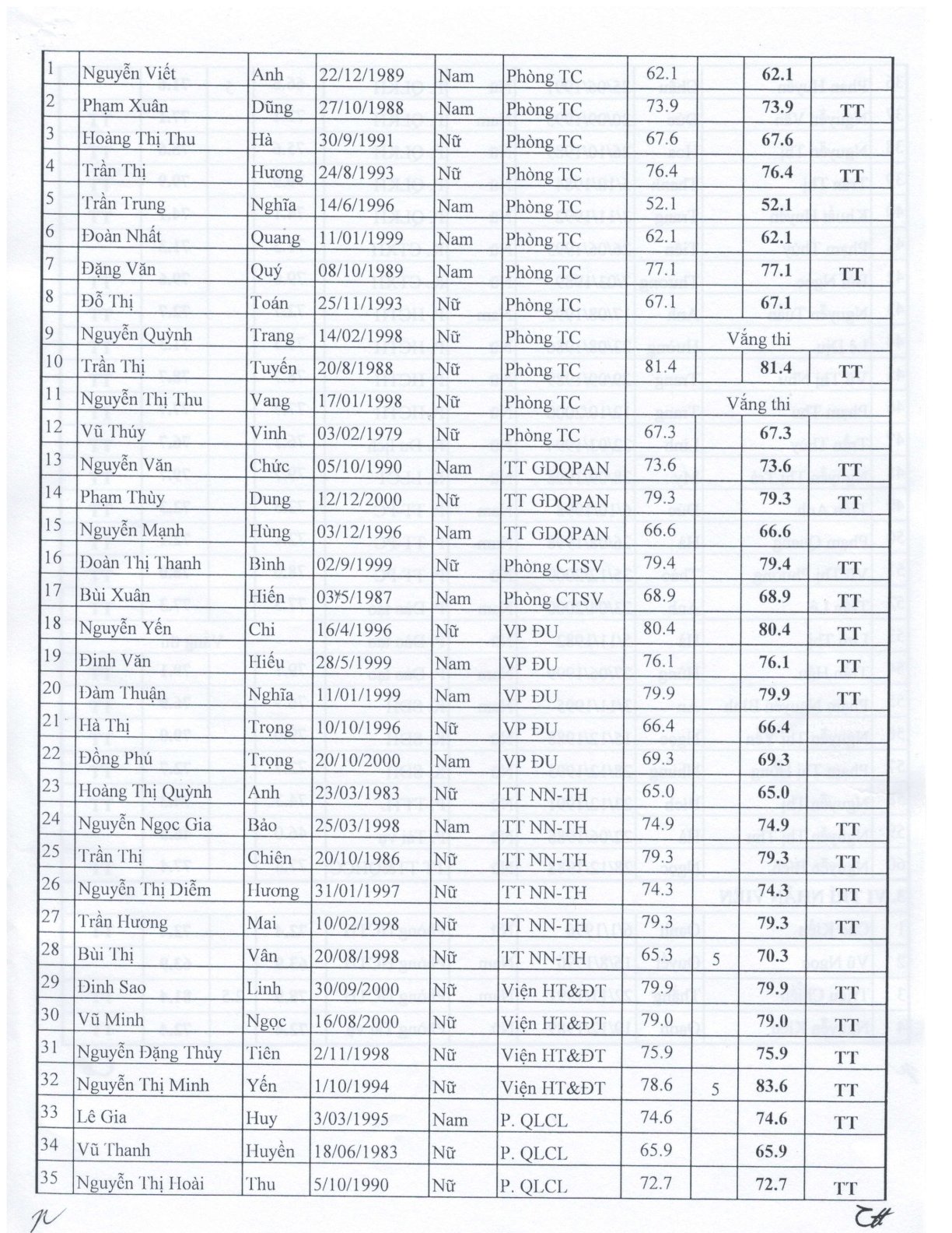 Thông báo về việc công nhận kết quả và dự kiến trúng tuyển viên chức năm 2022