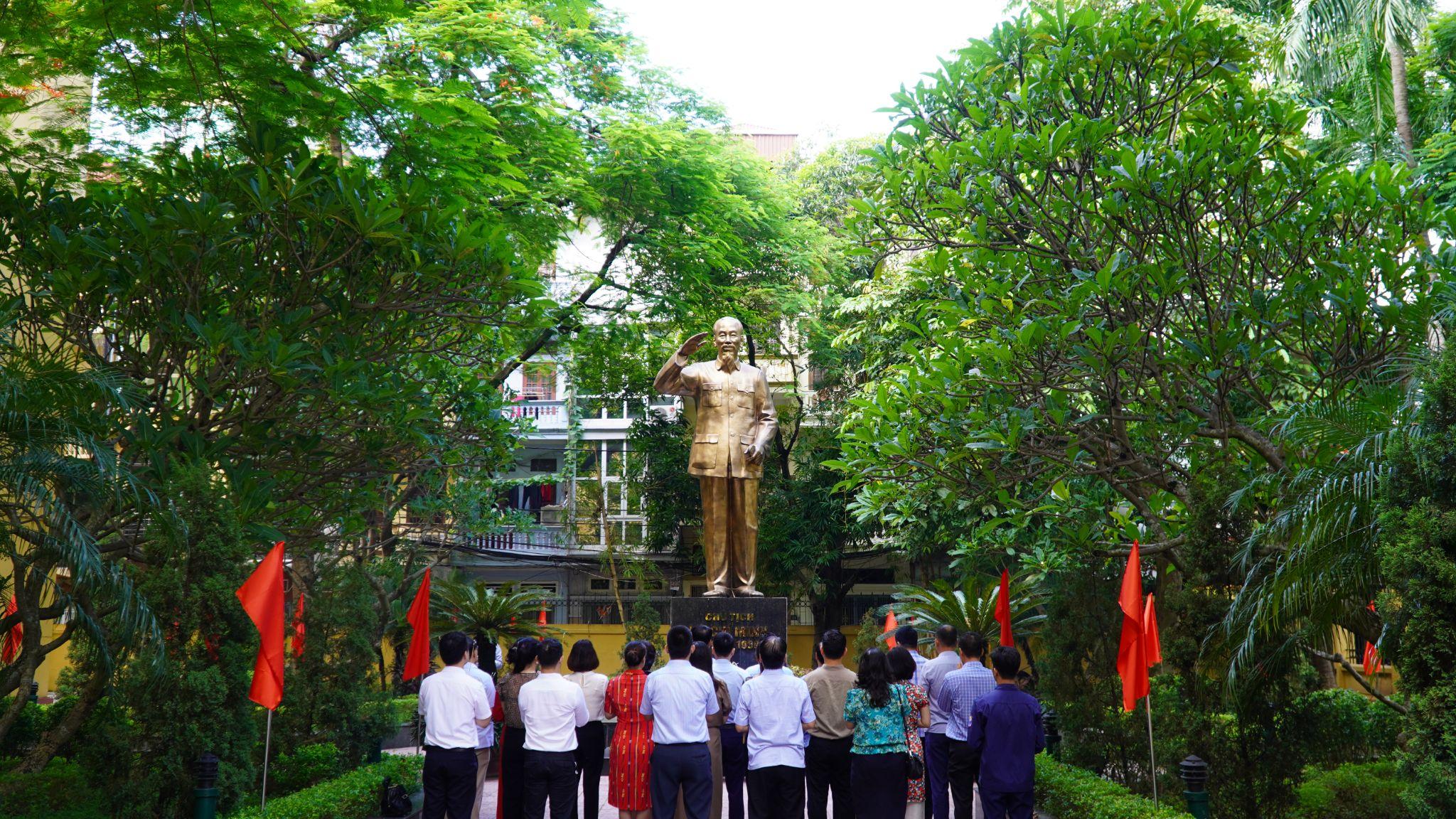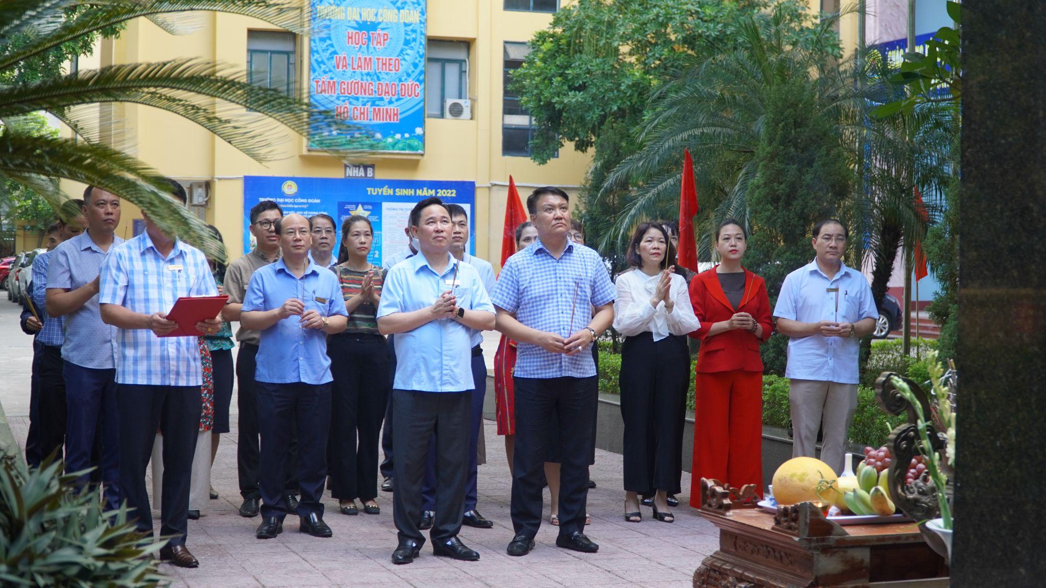 Trước tượng đài Bác Hồ, các đồng chí Lãnh đạo Nhà Trường đã dành một phút mặc niệm, bày tỏ lòng thành kính trước anh linh Chủ tịch Hồ Chí Minh, tưởng nhớ công lao vĩ đại của Người đối với sự nghiệp đấu tranh giải phóng dân tộc và xây dựng đất nước nói chung và Trường Đại học Công đoàn nói riêng.