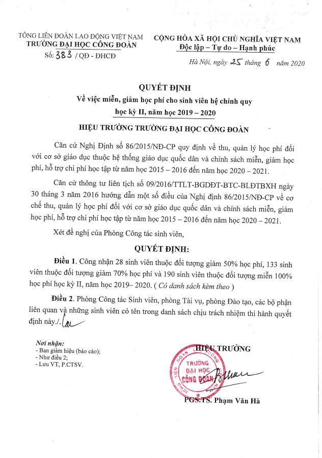 3. DANH SÁCH SINH VIÊN ĐƯỢC MIỄN GIẢM HỌC PHÍ. Xem ở đây