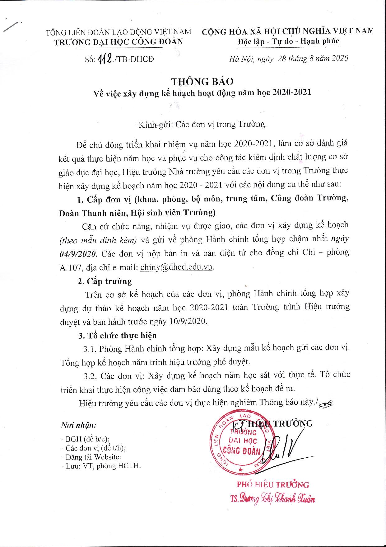 Thông báo về việc xây dựng kế hoạch hoạt động năm học 2020 - 2021