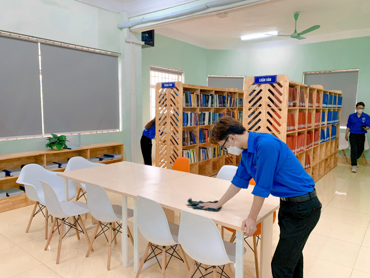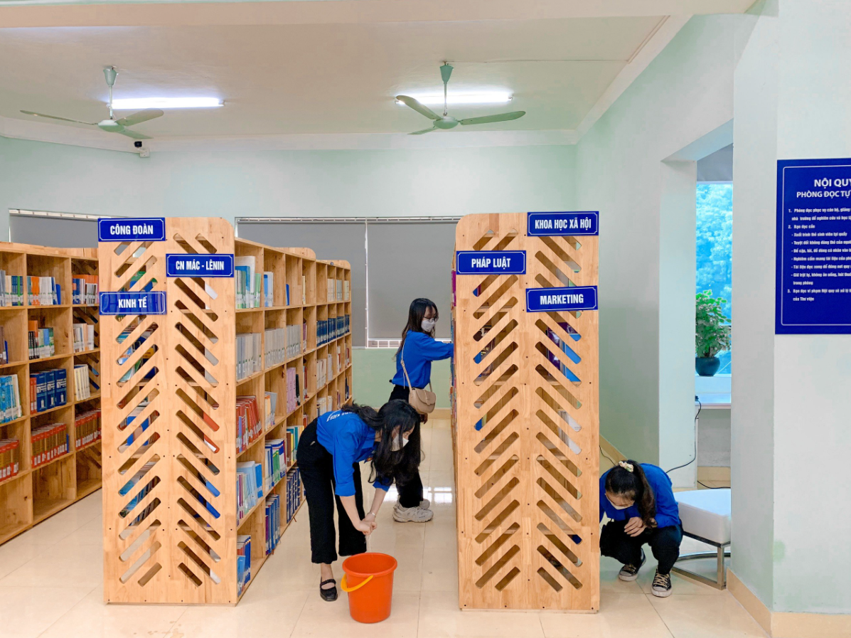 Bên cạnh đó, vào ngày 22 tháng 04 năm 2022, Phòng Thông tin Tư liệu, Đoàn Thanh niên – Hội Sinh viên Trường Đại học Công đoàn đã tổ chức sắp xếp, lau dọn sạch sẽ và phân loại sách, tài liệu để các bạn sinh viên có thể tra cứu và tìm đọc một cách thuận lợi và dễ dàng hơn.