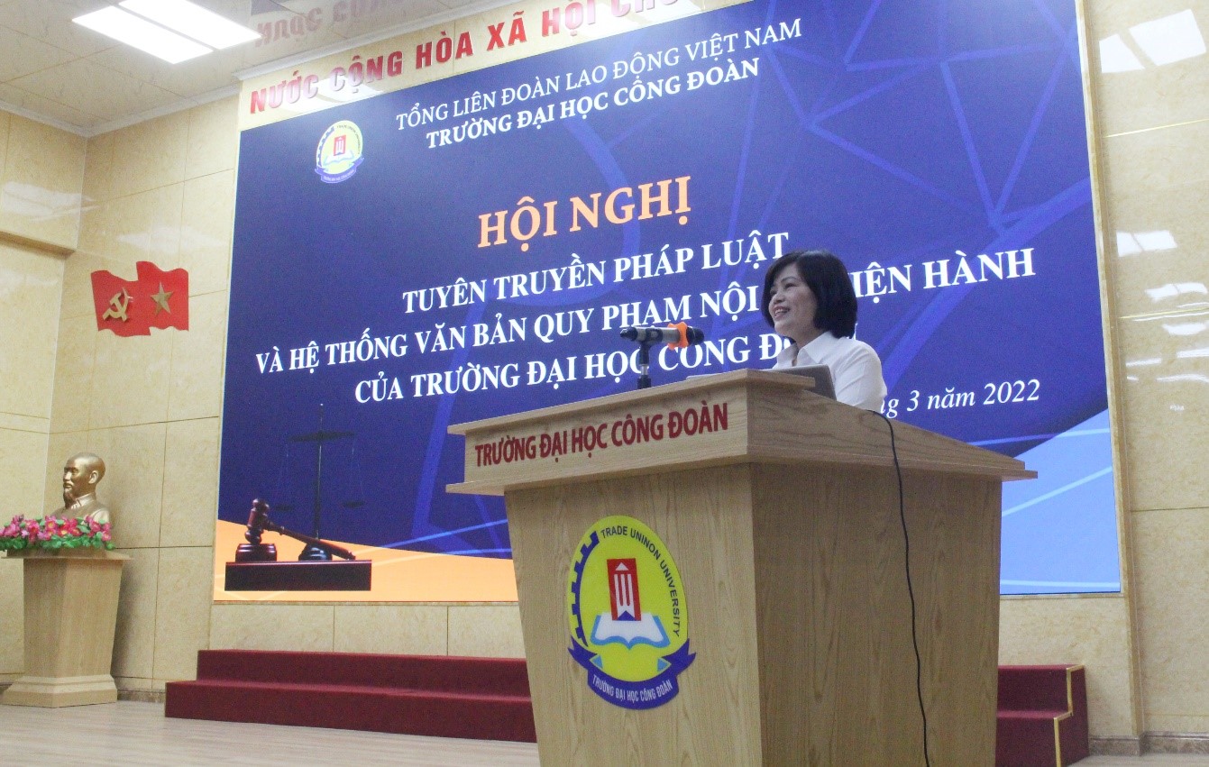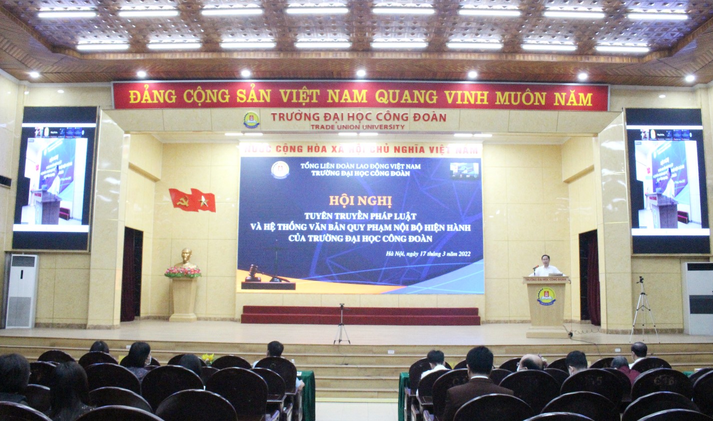 Ngày 17/3/2022, Trường Đại học Công đoàn tổ chức hội nghị tuyên truyền pháp luật và hệ thống văn bản quy phạm nội bộ hiện hành năm 2022 nhằm nâng cao hiểu biết của viên chức, người lao động về pháp luật, tạo tiền đề thực hiện tốt hơn các quy định của pháp luật và quy phạm nội bộ Nhà trường.