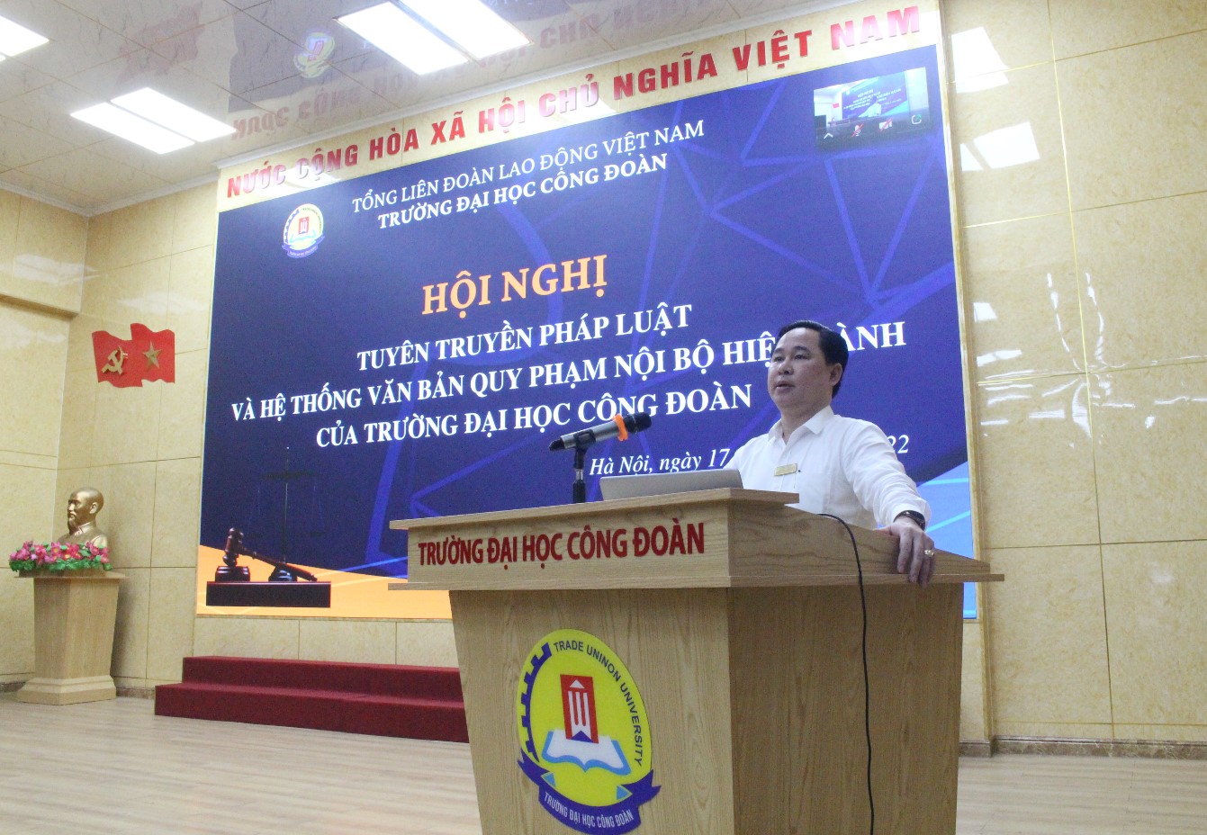 Hội nghị tuyên truyền pháp luật và hệ thống văn bản quy phạm nội bộ hiện hành của trường Đại Học Công Đoàn