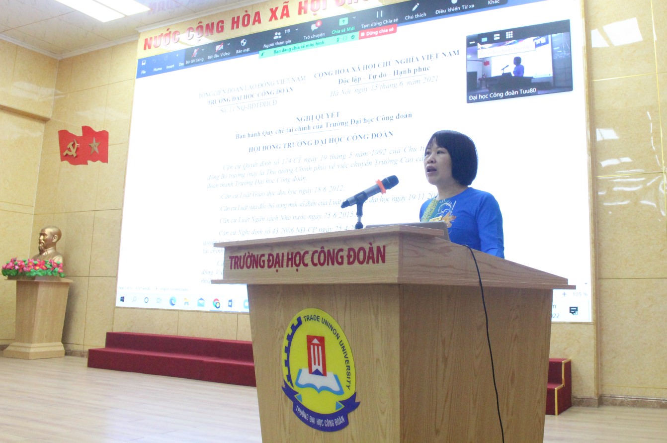 Tại hội nghị, TS. Hoàng Minh Châu - Trưởng phòng Tài vụ đã trình bày những điểm mới cơ bản của một số văn bản pháp luật và văn bản quy phạm nội bộ hiện hành của trường Đại học Công đoàn về công tác tài chính.