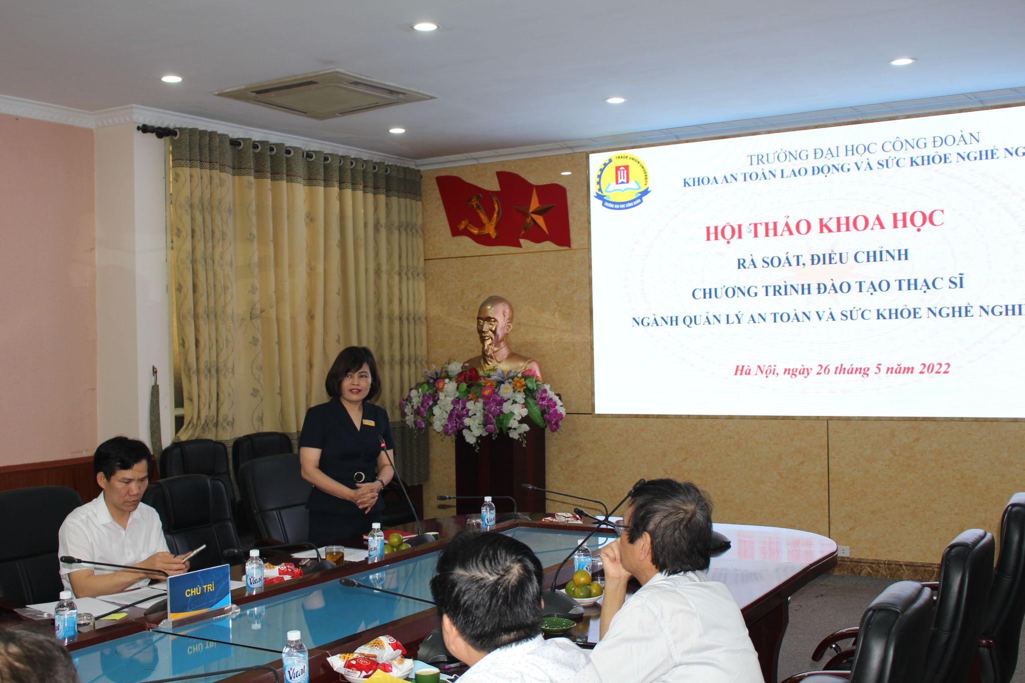 Phát biểu khai mạc hội thảo, TS Dương Thị Thanh Xuân - Phó Hiệu trưởng nhấn mạnh tầm quan trọng và tính thực tiễn của công tác quản lý an toàn và sức khỏe nghề nghiệp đối với xã hội. Việc rà soát điều chỉnh các chương trình đào tạo thạc sĩ có ý nghĩa quan trọng trong việc bảo đảm điều kiện lao động an toàn và chăm lo gìn giữ sức khỏe cho người lao động trong doanh nghiệp cũng như trong các cơ quan nhà nước.