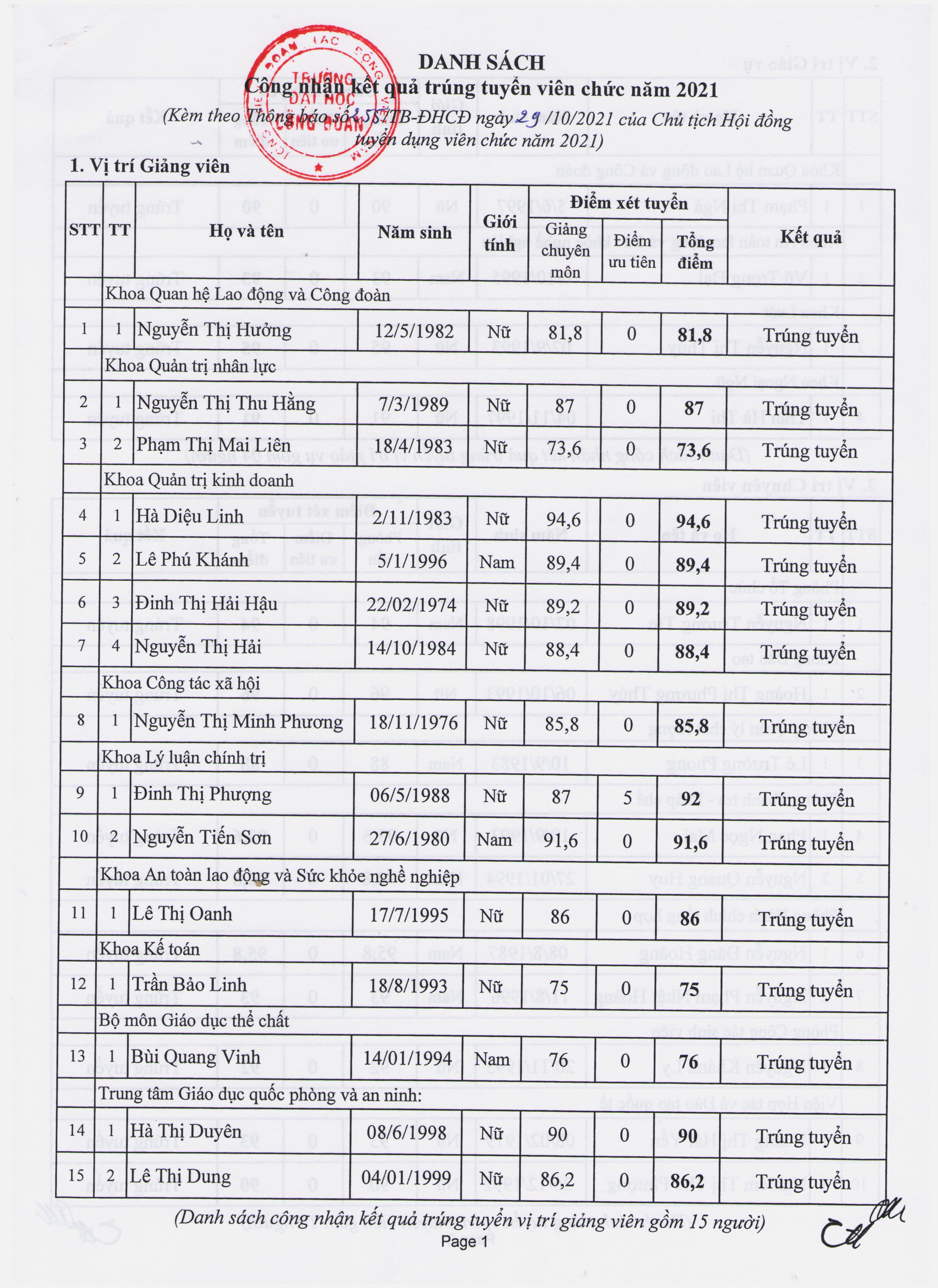 Thông báo công nhận kết quả trúng tuyển kỳ tuyển dụng viên chức năm 2021