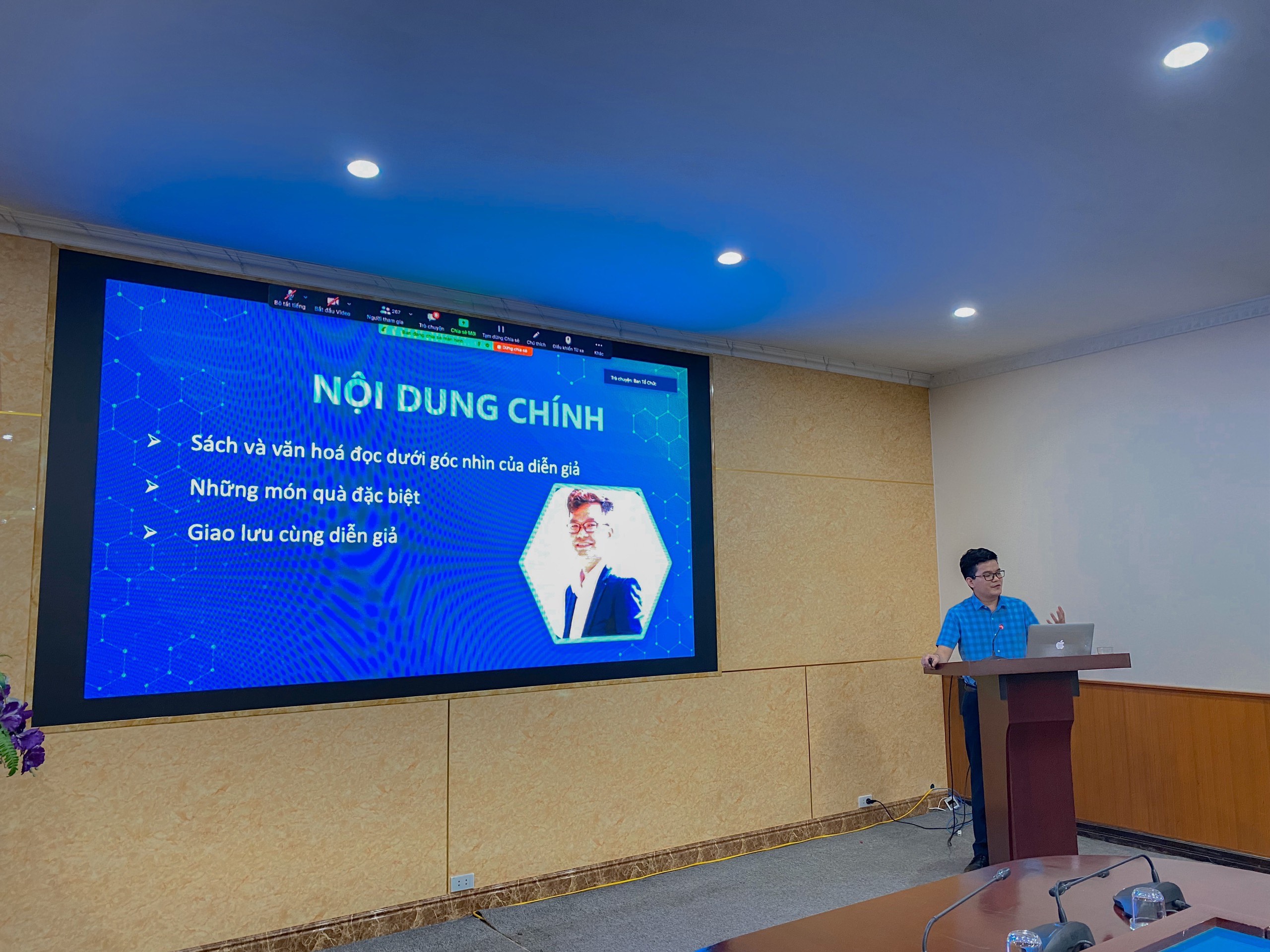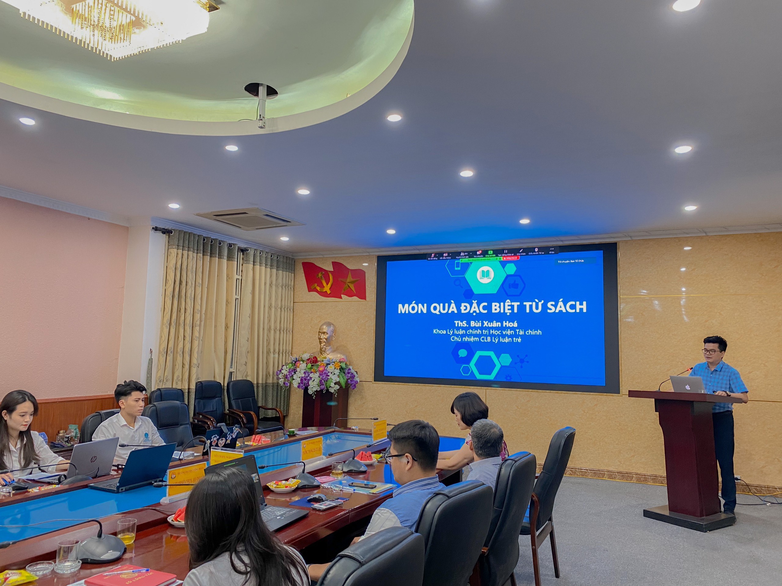 Xuyên suốt chương trình, Diễn giả ThS. Bùi Xuân Hóa – Chủ nhiệm Câu lạc bộ Lý luận trẻ, Giảng viên Học viện Tài chính đã có những chia sẻ tại Tọa đàm về chủ đề “Món quà đặc biệt từ sách” với những nội dung cụ thể như: Vai trò của sách đối với sinh viên, văn hoá đọc sách trong thời kỳ chuyển đổi số và kinh nghiệm đọc sách.